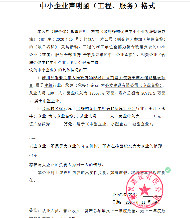 一、项目基本情况 1、采购项目编号:淅财磋商采购-2025-74 ******人民政府2025淅川县荆紫关镇药王庙村道路建设项目 3、采购方式:竞争性磋商 4、采购公告发布日期:2025年11月05日 5、评审日期:2025年11月19日 二、成交情况